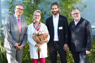 Im Heilkräutergarten der Ceres Heilmittel AG in Kesswil: Der Thurgauer Regierungsrat und Gesundheitsdirektor Urs Martin, Nationalrätin Edith Graf-Litscher, Ceres-CEO Christoph Kalbermatten und SVKH-Präsident Dr. Herbert Schwabl (v. l. n. r.)