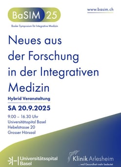 Nach den erfolgreichen Veranstaltungen in den Jahren 2021 und 2023 laden das Universitätsspital Basel und die Klinik Arlesheim zur dritten Ausgabe des Basler Symposiums für Integrative Medizin ein. Am 20. September 2025 erwartet Sie ein inspirierender Austausch zwischen Forschenden und Praktizierenden der konventionellen sowie der komplementären Medizin. Das Symposium bietet spannende Einblicke in aktuelle Forschungsthemen und innovative Ansätze der Integrativen Medizin. Die Veranstaltung findet hybrid statt, eine Teilnahme ist sowohl vor Ort als auch online möglich. ZUR ANMELDUNG